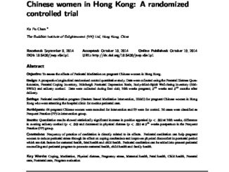 論文 Effects of perinatal meditation on pregnant Chinese women in Hong Kong: A randomized controlled trial 2014 年 10 月 19 日 陳家寶 …